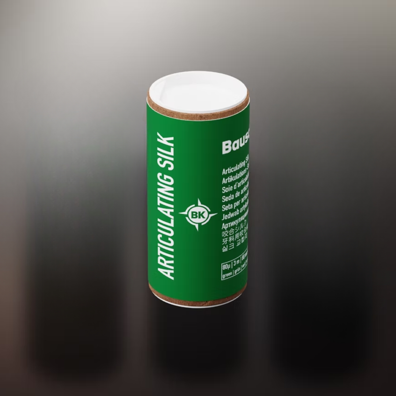 Articulating Silk — це високоякісний тканинний продукт із властивостями, порівнянними з Progressive Color Articulating Paper 200μ. Тканина стійка до розривів і ідеально адаптується до горбків і ямок завдяки своїй малій товщині та гнучкості. Маркування артикуляційного шовку надзвичайно точне та насичене кольором. Десятиліттями Articulating Silk є перевіреним матеріалом для тестування оклюзії як у стоматології, так і в стоматологічній техніці для тестування фізіологічно розроблених оклюзійних поверхонь.