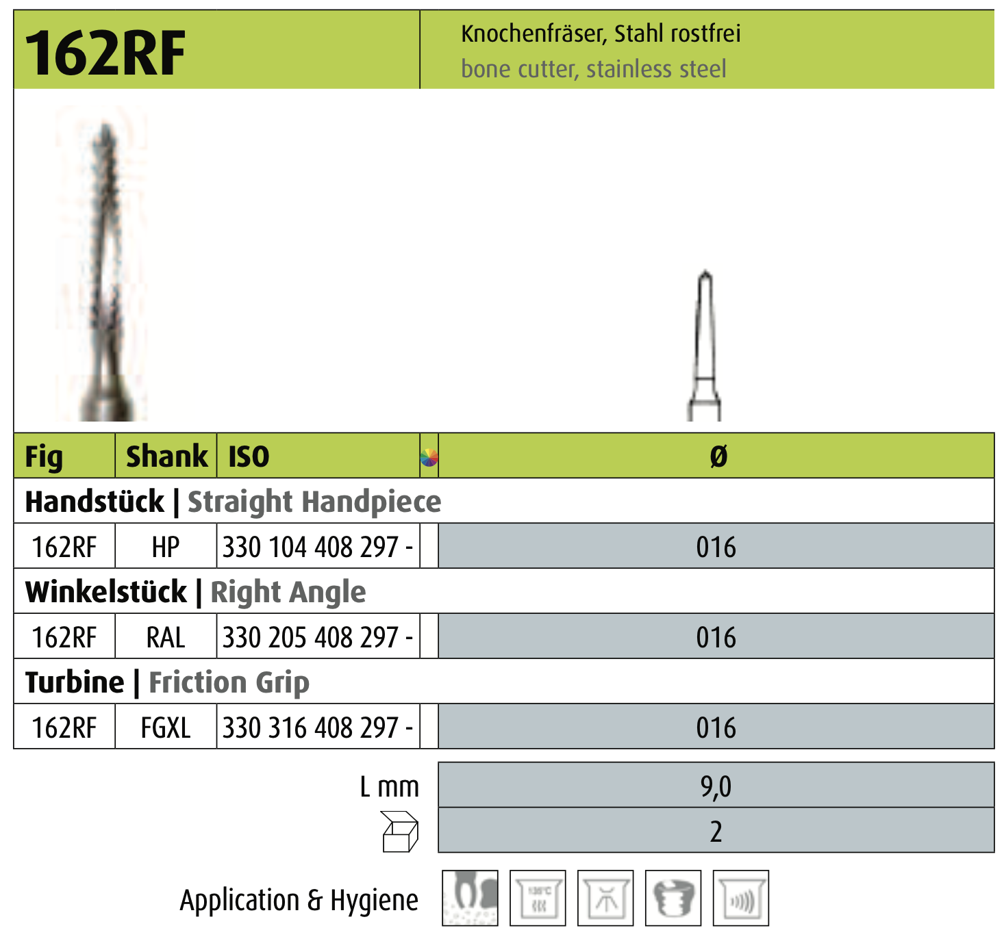Фреза хірургічна Jota 162RF.316.016 — це спеціалізований кістковий різець (Lindemann cutter) від швейцарського виробника Jota. Інструмент, виготовлений з високоякісної нержавіючої сталі, призначений для точного та ефективного розрізання кісткової тканини.