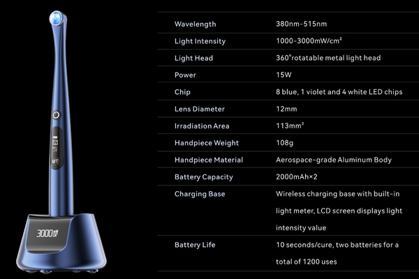- Ідеально підходить для міжпроксимальної полімеризації (засвічування між зубами), що підвищує ефективність лікування.