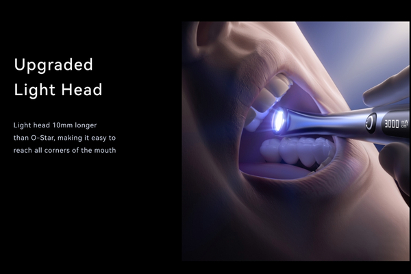 Покращена робоча частина. Подовжена на 10 мм (порівняно з O-star) для комфортного доступу та засвічування у найвіддаленіших ділянках рота.