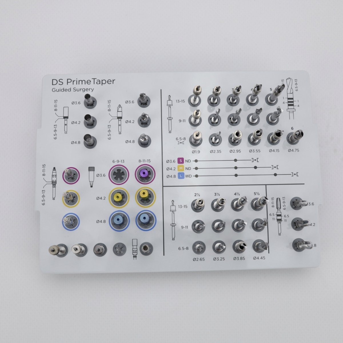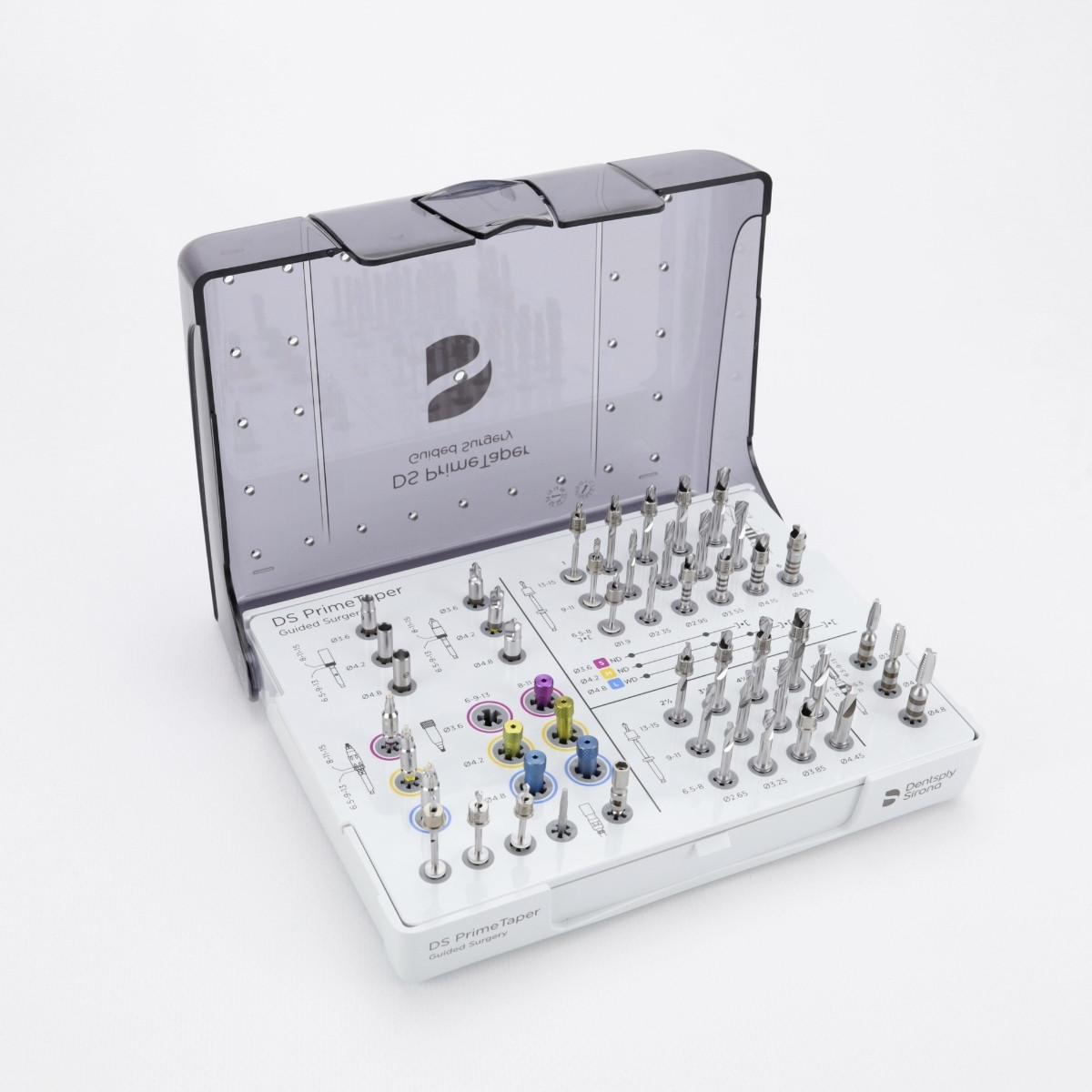 Навігаційний набір PrimeTaper GS Regular призначений для проведення хірургічних втручань із використанням направляючих (GS – Guided Surgery). Набір використовується для зберігання, стерилізації та організації хірургічних інструментів PrimeTaper, що забезпечує комфортну й ефективну роботу під час операції.