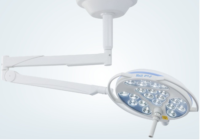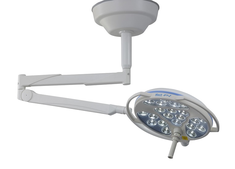 Світильник операційний Mach LED 2mc (Multi Color - зміна температури світла), діодний, 115 000 LUX, стельовий (при висоті стелі 2.81м - 3.0м), регульоване поле освітлення 17 см - 28 см, регульований фокус, регульована температура світла - 3750, 4000, 4250, 4500, 4750, діаметр 48 см, робоча відстань 60 см - 150 см.