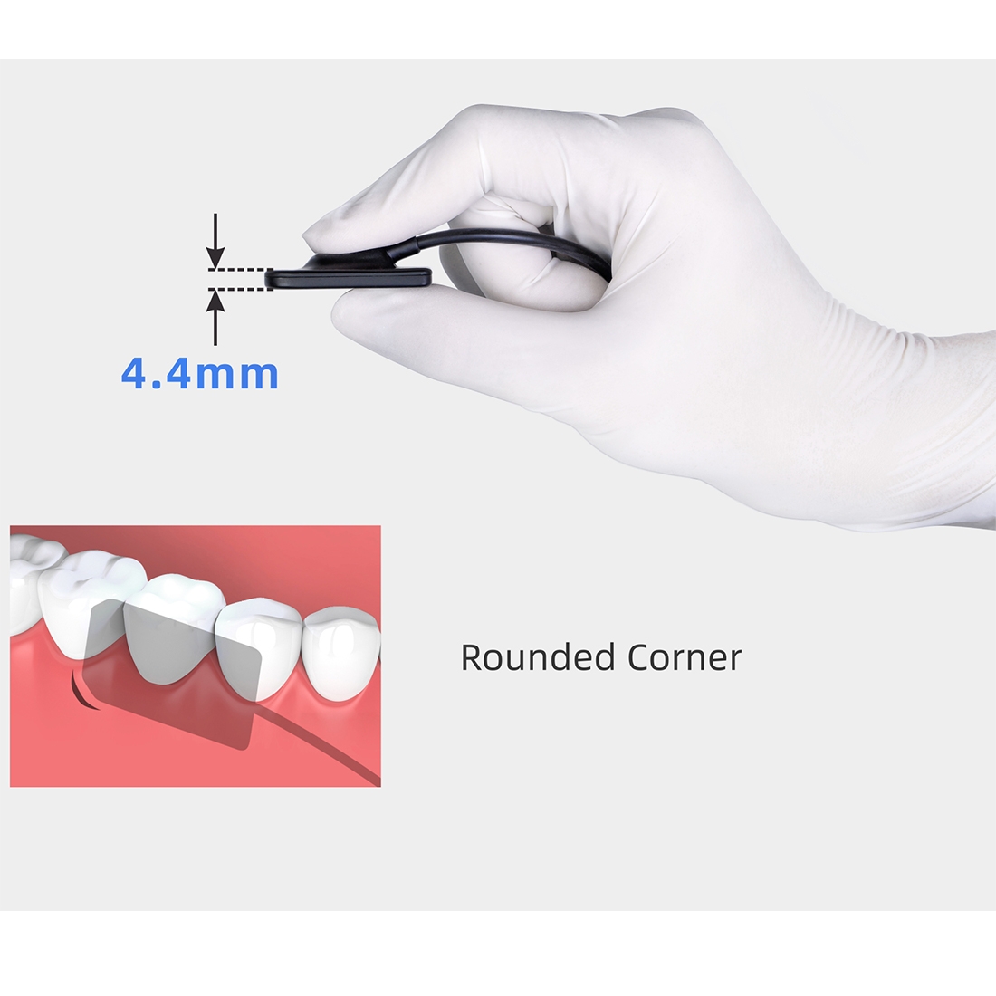 Сенсор i-Sensor ергономічний, зі згладженими кутами, товщиною 4,5 мм — це робить позиціювання сенсора у роті легким для пацієнта та зручним для лікаря.