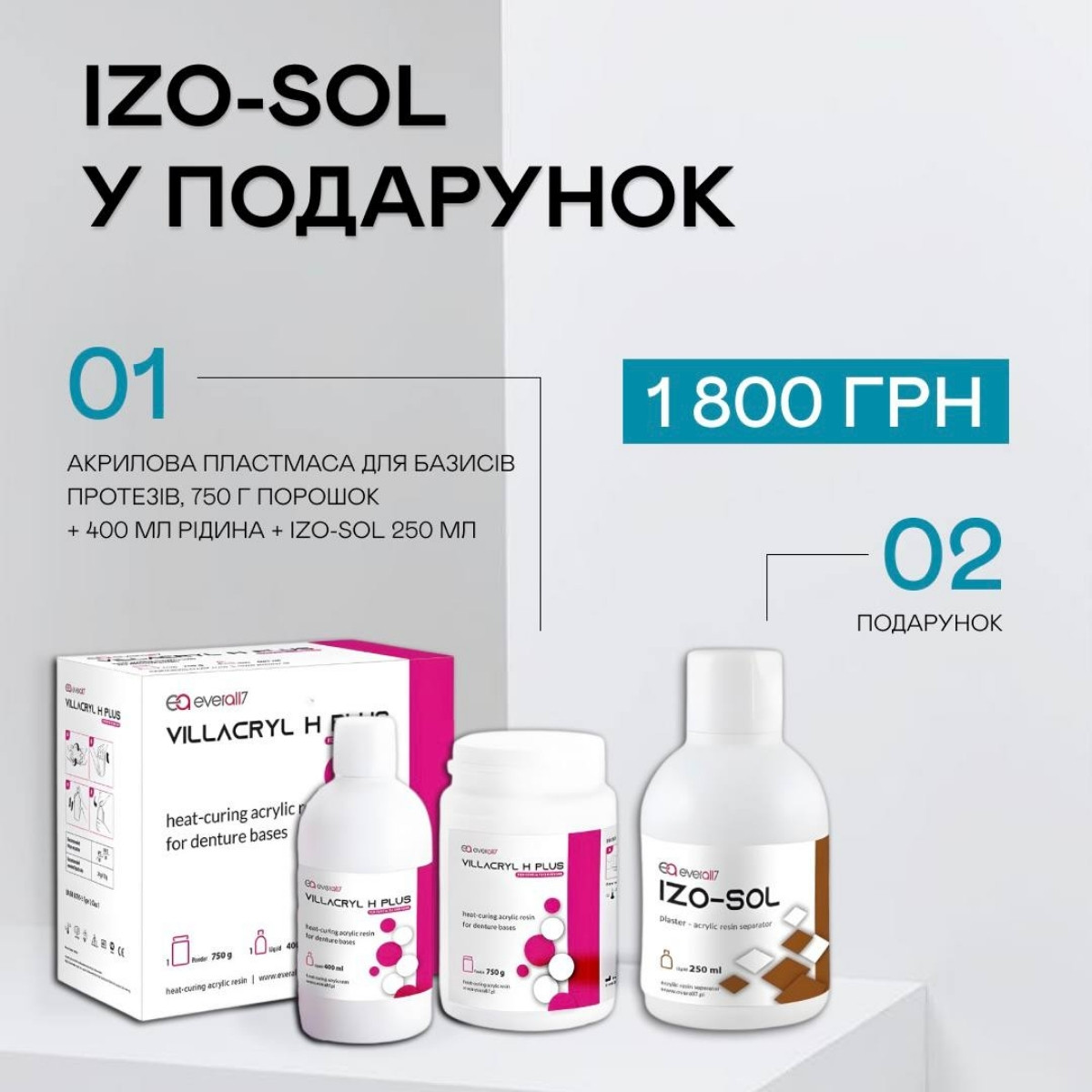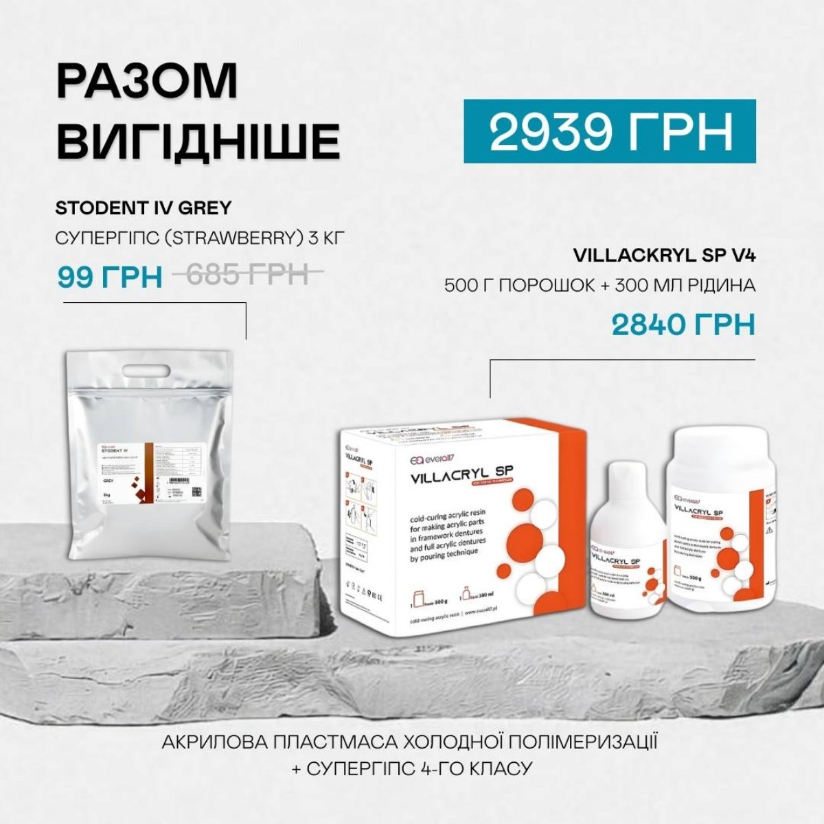 Villackryl SP V4, 500г порошок+300мл рідина + супергіпс Stodent IV grey (strawberry) 3 кг