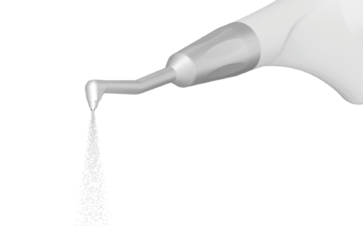 Потік порошку швидко видаляє плями та наліт. Маленька і довга головка, що обертається на 360° забезпечує легкий доступ і кращу маневреність у ротовій порожнині.
