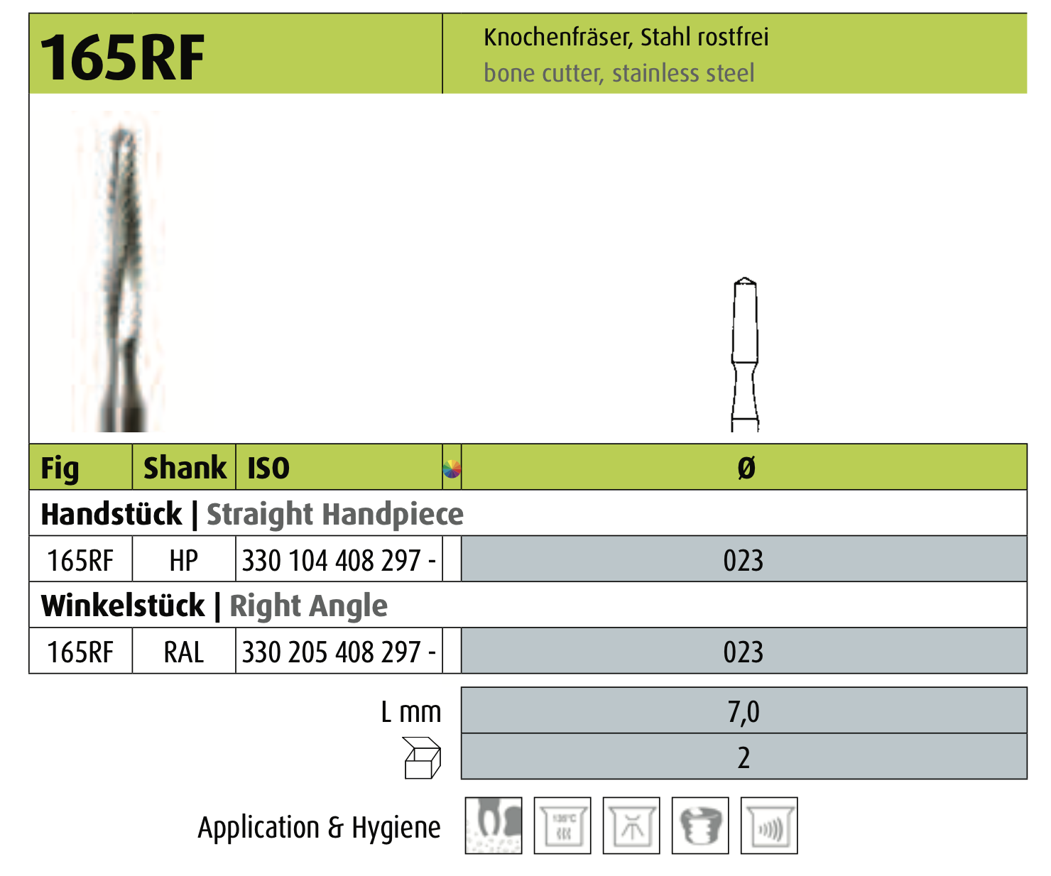 Фреза хірургічна Jota 165RF.104.023 — це спеціалізований інструмент від швейцарського виробника Jota, призначений для різання кістки. Інструмент виготовлений з міцної нержавіючої сталі.
