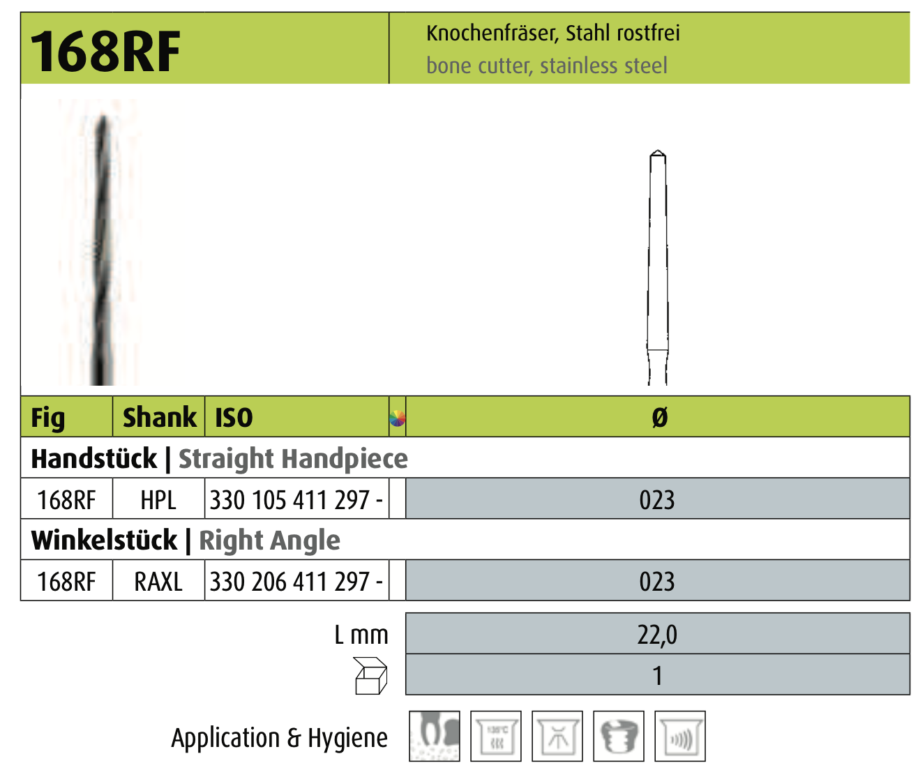 Фреза хірургічна Jota 168RF.105.023 — це спеціалізований інструмент від швейцарського виробника Jota, призначений для роботи з кістковою тканиною. Цей інструмент є кістковим різцем («Knochenfräser»). Він виготовлений з міцної нержавіючої сталі («stainless steel»).