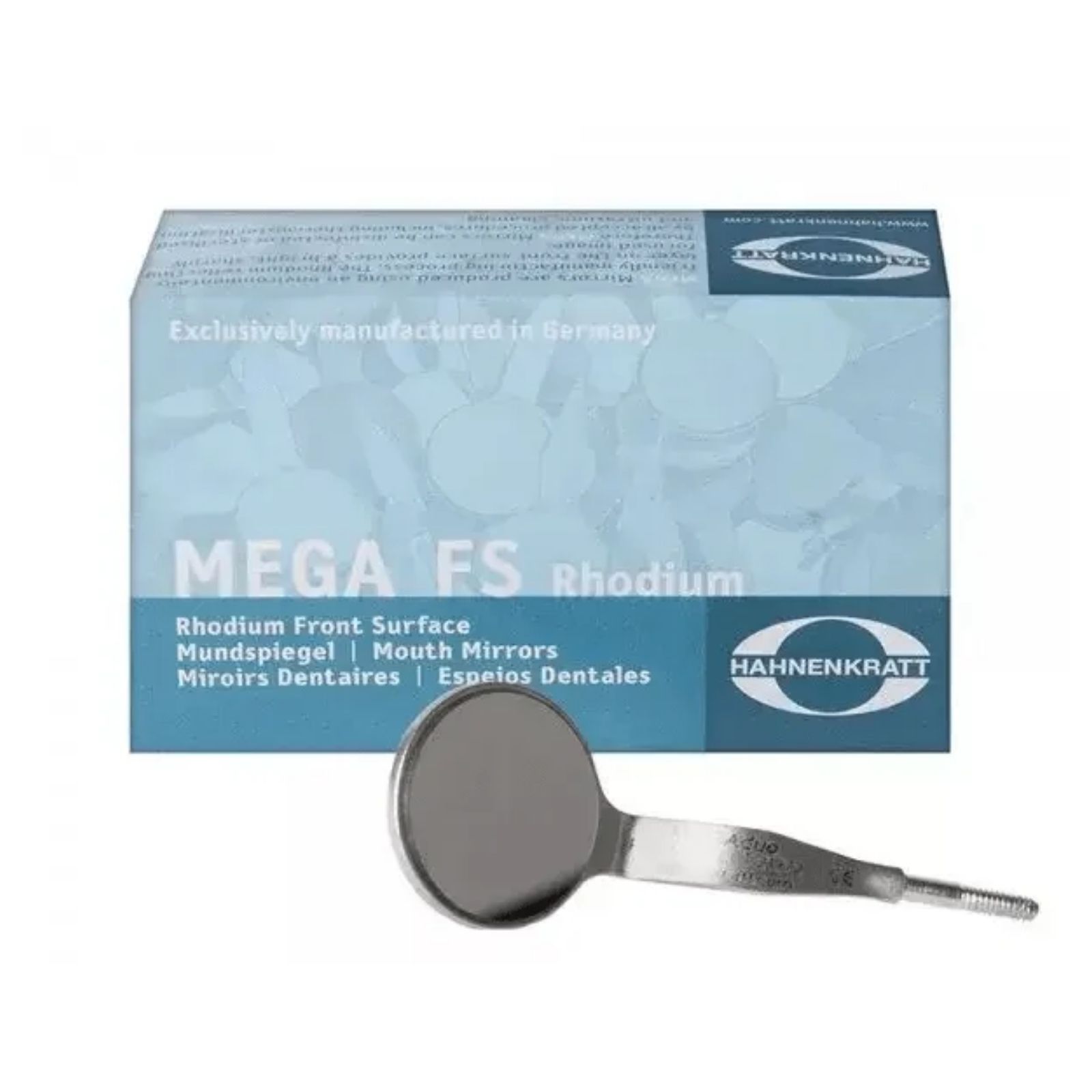 Дзеркало MEGA FS Rhodium №5 від німецького виробника Hahnenkratt — це високоякісне стоматологічне дзеркало з родієвим покриттям, призначене для ідеального відображення та надійної роботи в умовах клініки. Родієве покриття, нанесене на внутрішню поверхню (front surface - FS), гарантує відсутність подвійного зображення та найвищу якість відображення