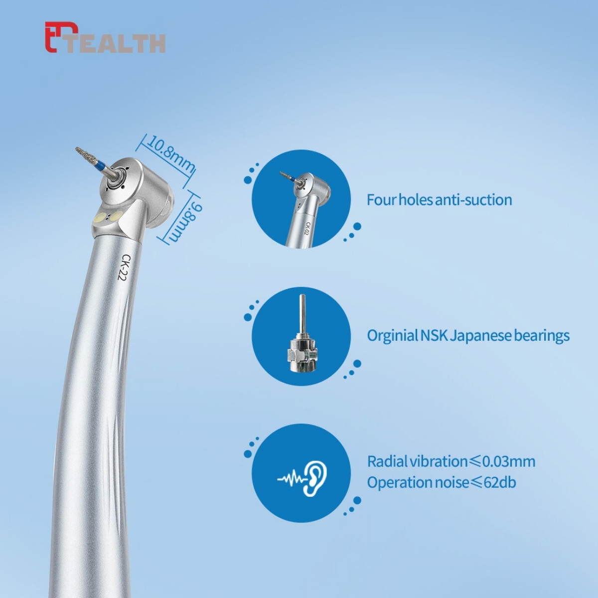 - Надзвичайно висока швидкість обертання (до 400 000 об/хв) гарантує швидке, легке та ефективне препарування твердих тканин зуба.
