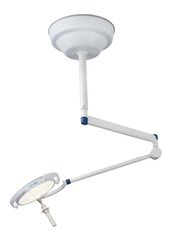 Светильник операционный Mach LED 2sc Hybrid, диодный, 115 000/30 000 LUX, потолочный (при высоте потолка 2.81м - 3.0м), регулируемое поле освещения - 17см - 28см / овал 9 Х 5,5см, регулируемый фокус, температура света 4,500К, диаметр 48см, рабочее расстояние 60см - 150см, общая потребляемая мощность 10-30 Вт