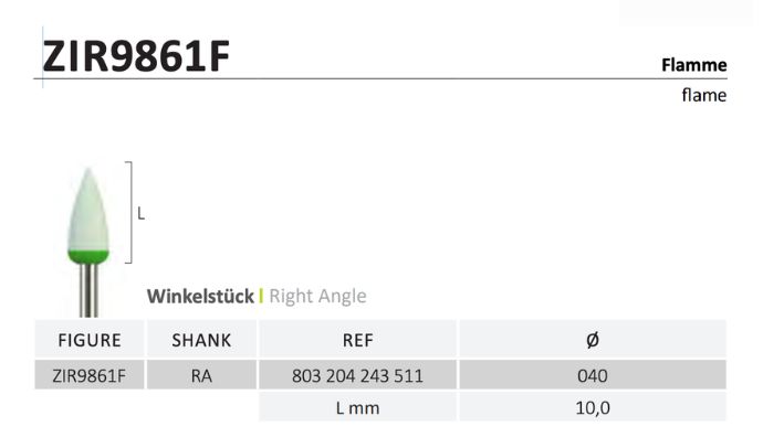 Гумка для полір.Zr полум'я зелена Diamond Swivel Zir Gloss