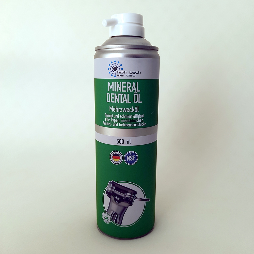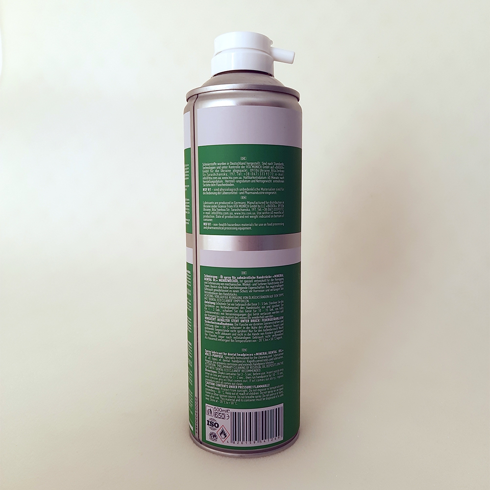Смазка-спрей для стоматологических наконечников MINERAL DENTAL OIL, многофункциональная. 500 мл. Специально разработаная для очистки и смазки механических, угловых и турбинных наконечников всех типов. Обладает высоким проникающим и смазывающим свойством. При регулярном применении, обеспечивает защиту от коррозии и продлевает срок службы наконечников