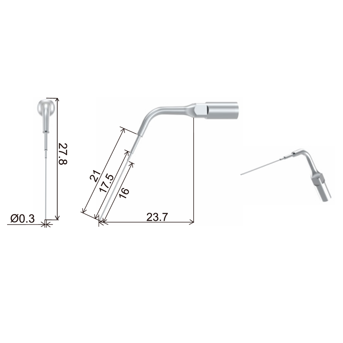 Насадка Woodpekcer E62, эндодонтическая, резьба EMS. Рабочая часть гладкая, без режущих свойств. Кончик тупой, диаметр 0,3 мм. Длина рабочей части 16 мм. Для ирригации каналов. Аналог насадок Acteon серии IRR F43805-8
