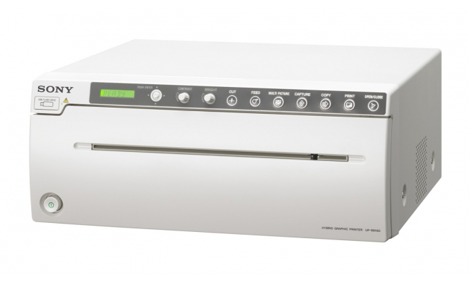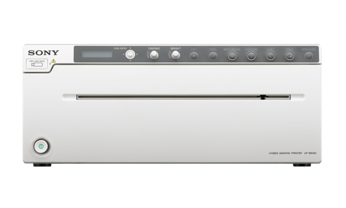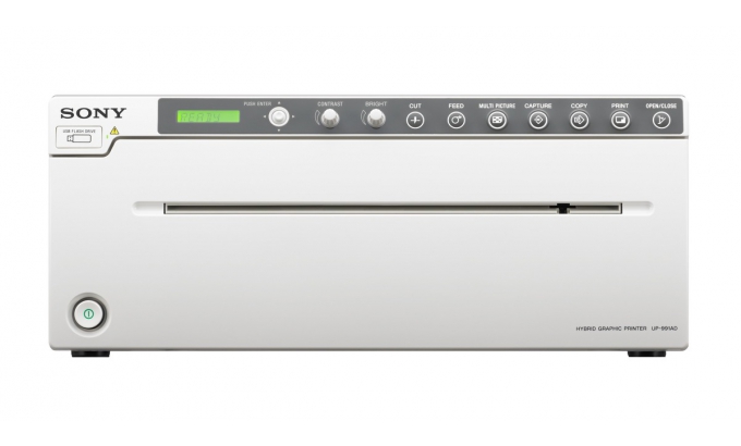 UP-991AD — компактный черно-белый принтер, разработанный для использования в цифровых и аналоговых системах визуализации изображений рентгенологического оборудования, например, рентгеновский аппарат типа С-дуга, лаборатория катетеризации сердца, цифровое устройство ультразвукового исследования органов и прочих совместимых медицинских систем.