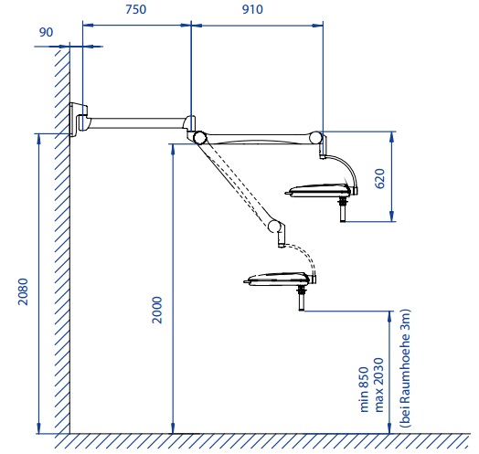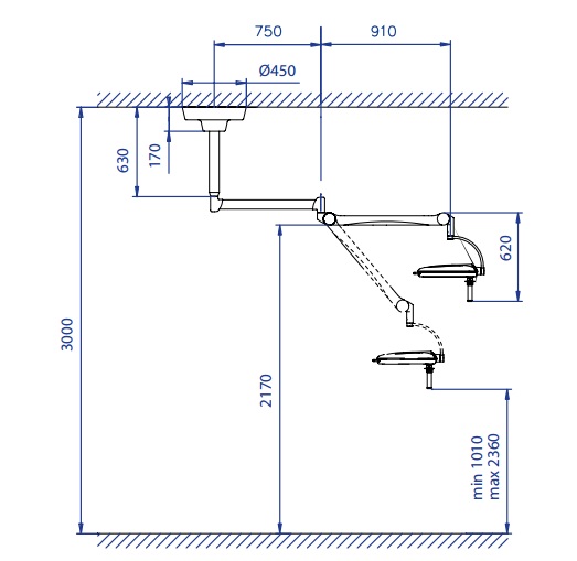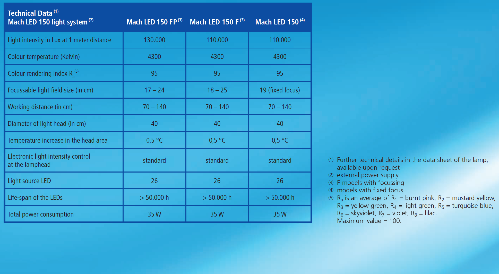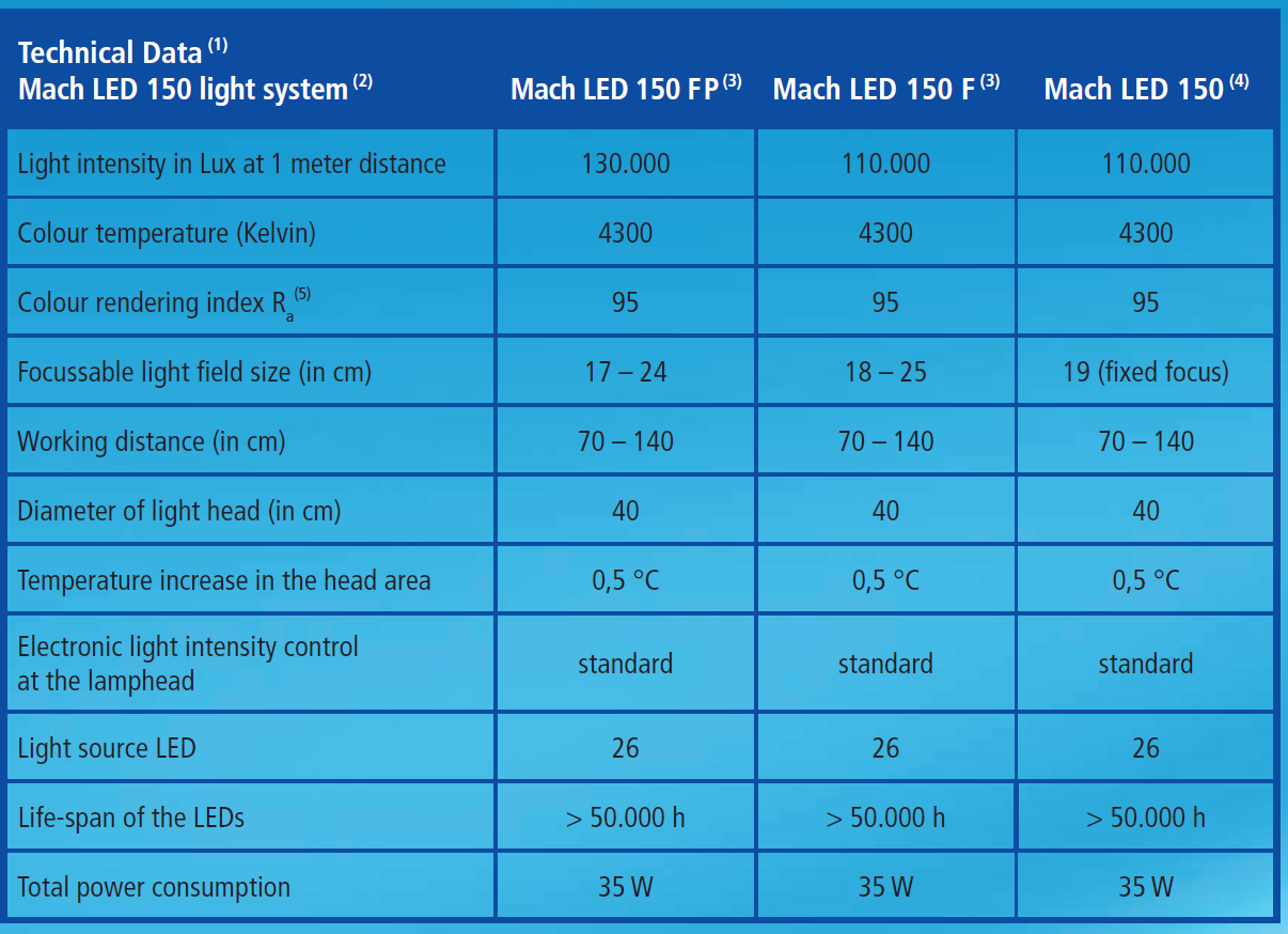 Светильник операционный Mach LED 150F, диодный, 100 000 LUX, потолочный (при высоте потолка 2.61м - 3.0м), поле освещения 14 см- 25 см, регулируемый фокус, температура света 4,300К, диаметр 38 см