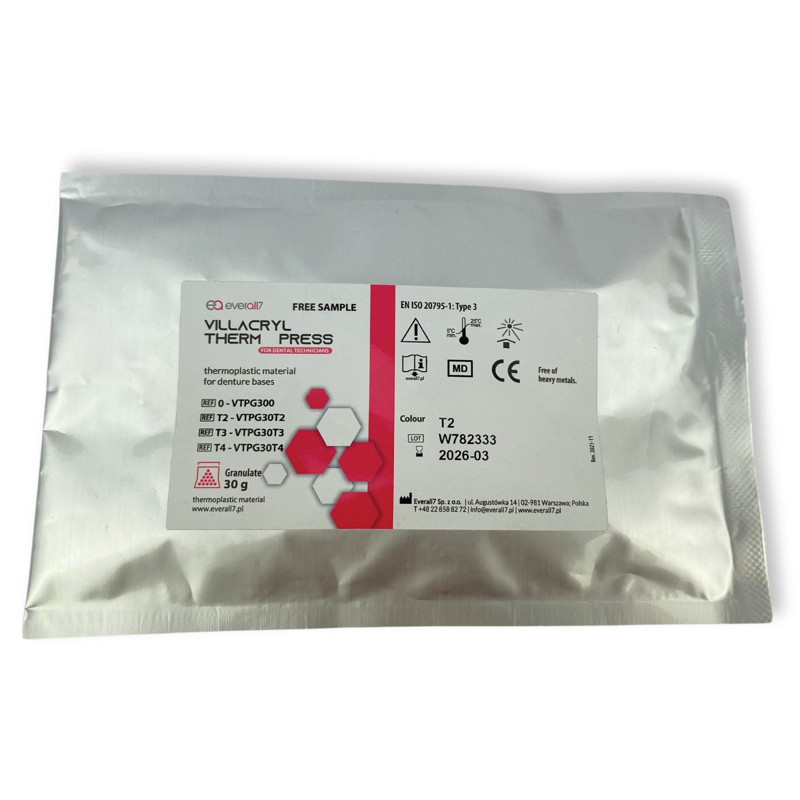 Безкоштовний пробник Villacryl Thermo Press, термопластичний матеріал для виготовлення повних протезів 30г